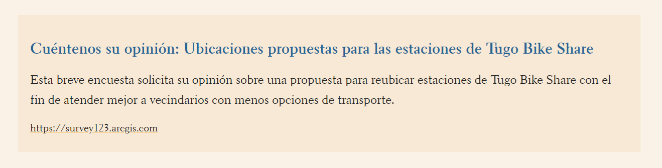 Calles c/s TUGO es la iniciativa de FUGA para la redistribución de cinco estaciones de bicicletas TUGO en el lado oeste de la ciudad